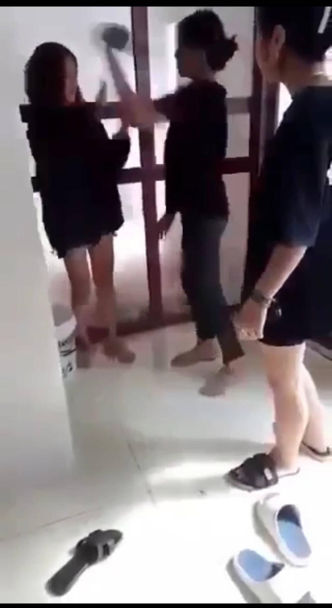 Dùng dép đánh vào đầu và người nữ sinh - ảnh cắp từ video