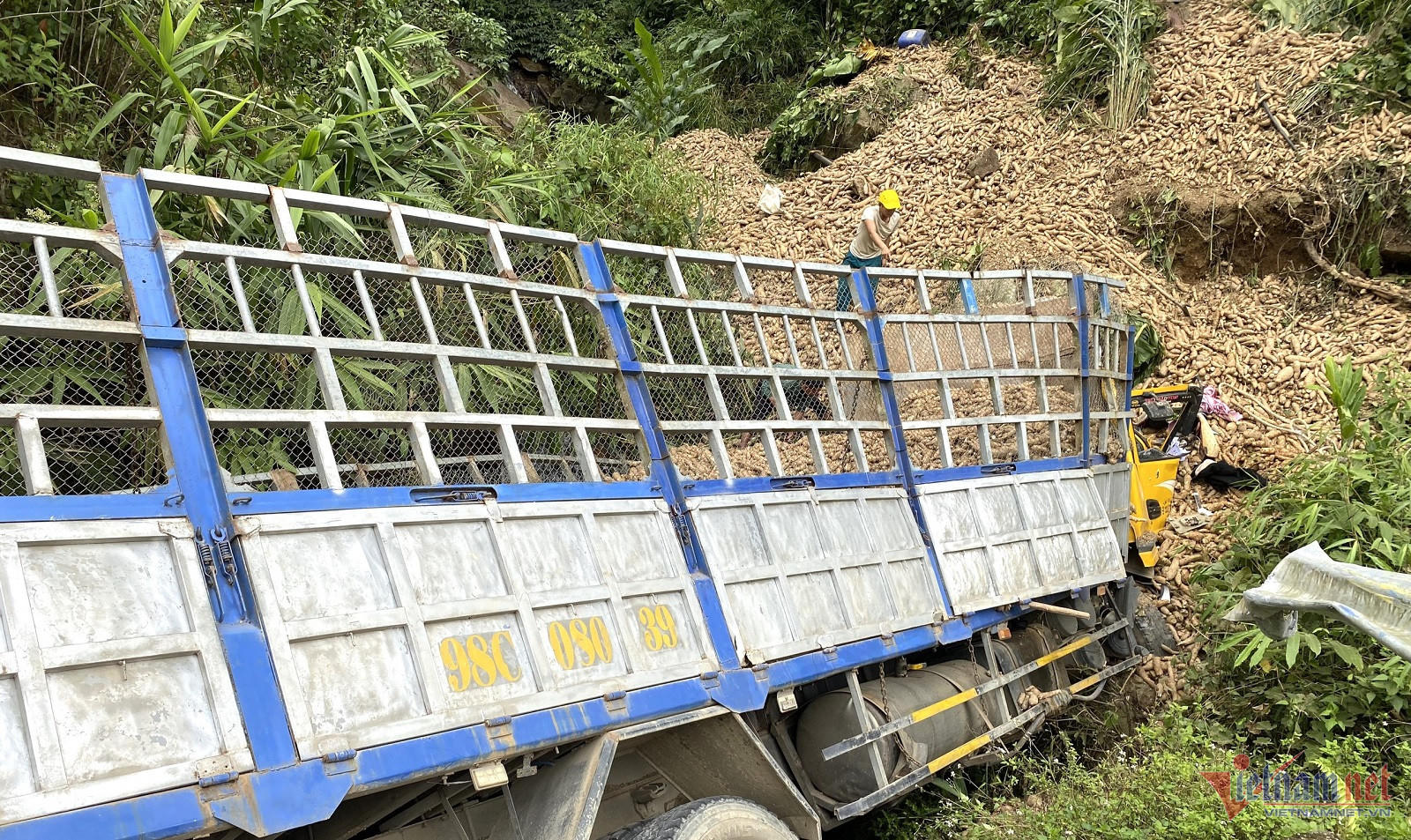 Chiếc xe tải chở sắn đang di chuyển trên Quốc lộ 16 bất ngờ mất lái lao xuống vực sâu. Vụ tai nạn khiến 1 người chết, 2 người bị thương.