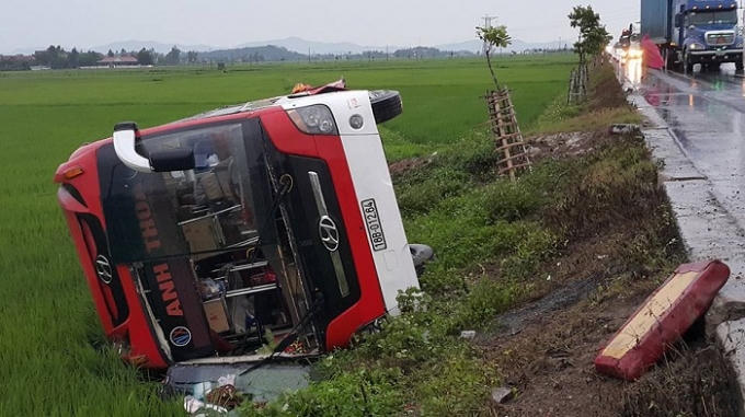 Vụ tai nạn nghiêm trọng nói trên xảy ra vào khoảng 3h30’ sáng ngày 30/4, trên tuyến đường tránh TP Vinh, Nghệ An. Vào thời điểm trên chiếc xe khách mang BKS 18B - 012.64 chạy tuyến Tây Ninh - Nam Định đang hướng về Bắc thì bất ngờ mất lái rồi va chạm với 3 chiếc xe tải chạy cùng chiều rồi lật xuống ruộng lúa bên đường.