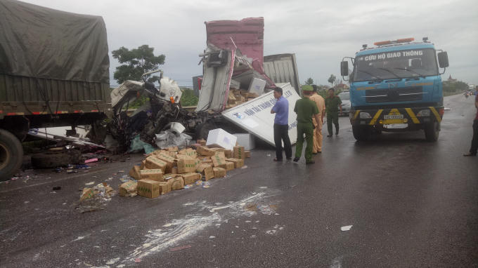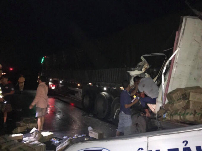Cú va chạm kinh hoàng khiến toàn bộ phần đầu chiếc xe tải bị biến dạng, dính chặt vào đuôi xe đầu kéo. Tài xế bị thương nặng và một người ngồi bên ghế phụ tử vong tại chỗ, cả hai người thương vong đều kẹt cứng trong cabin.