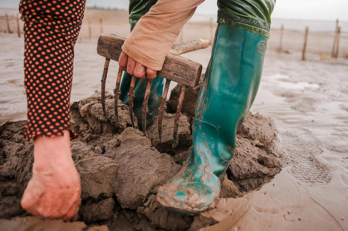 Hôm nay ra không đúng ngày, mọi người nghỉ làm, bà Phiên tranh thủ cào đất bắt vài con ngao về nấu canh cho đỡ mất công.