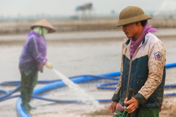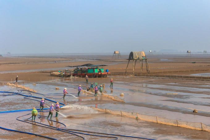 Vào vụ mùa thu hoạch, có cả trăm người lao động làm thuê cho chủ cánh đồng ngao, chủ yếu là những phụ nữ trong vùng. Người phụ nữ lam lũ kể: “Mỗi ngày đi làm 6 tiếng được 170.000 đồng. Bắt ngao to nên phải cào, giờ họ cải tiến dùng máy nước năng suất cao hơn. Vất vả hơn nhưng được cái lương cao”.