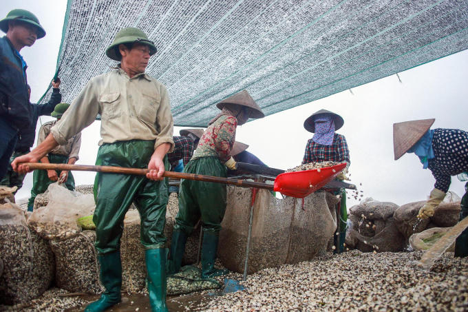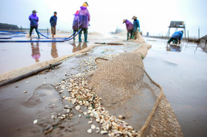 Trung bình mỗi cánh đồng ngao thu hoạch được vài chục tấn, sau khi sàng lọc phân loại xong, ngao được đóng gói lại, đem đi xuất khẩu các nước EU.