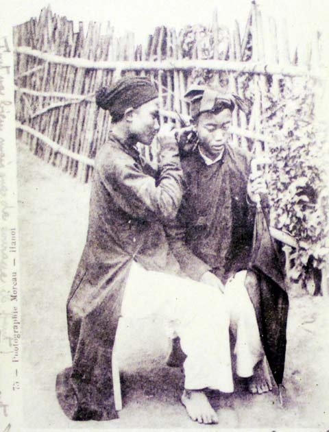 Hocquard là một bác sĩ đã theo đạo quân viễn chinh Pháp vào Hà Nội và lưu lại đây từ tháng 1/1884 đến tháng 5/1886, trong cuốn sổ ghi chép “Một chiến dịch ở Bắc Kỳ”, ông tỏ ra rất thú vị khi quan sát một nghề kiếm sống trên đường phố ở đây và viết: “Thú vị nhất trong các nghề ngoài trời đó là những chú thợ cạo – ngoáy tai và những người tẩm quất”.