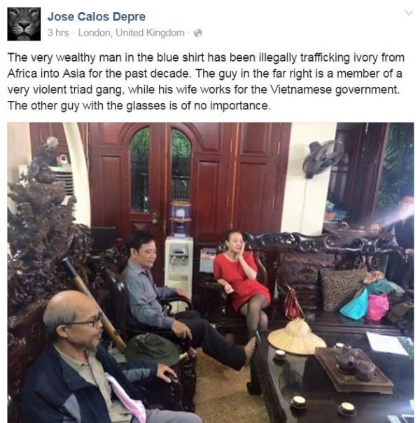 Mới đây, một tài khoản facebook có tên Jose Calos Depre bất ngờ đăng một bức ảnh có nghệ sĩ Quang Tèo, nghệ sĩ Hán Văn Tình cùng dòng chữ: “Người đàn ông rất giàu có trong chiếc áo xanh kia đã buôn lậu ngà voi từ châu Phi sang châu Á trong cả một thập kỷ qua... Người đeo kính còn lại không có gì quan trọng”.