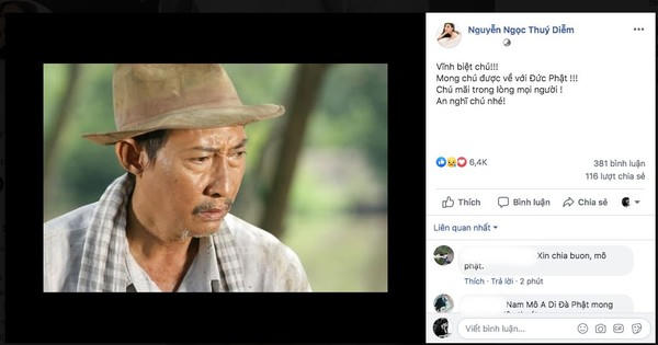 Rất nhiều nghệ sĩ Việt đã vô cùng thương tiếc tới sự ra đi của nam nghệ sĩ gạo cội của làng điện ảnh Việt.