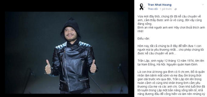 Trần Nhất Hoàng - Cựu thành viên ban nhạc Bức Tường chia sẻ trên Facebook ngay sau đám tang Trần Lập: