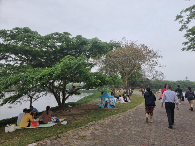 Thời tiết ngày cuối tuần tại Hà Nội không quá oi bức, có gió mát, nồng độ bụi mịn thấp tạo điều kiện tốt cho các gia đình đi chơi.