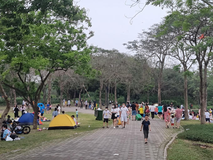 Nghỉ lễ kéo dài, công viên Yên Sở đông nghịt người, nhiều hạng mục hư hỏng