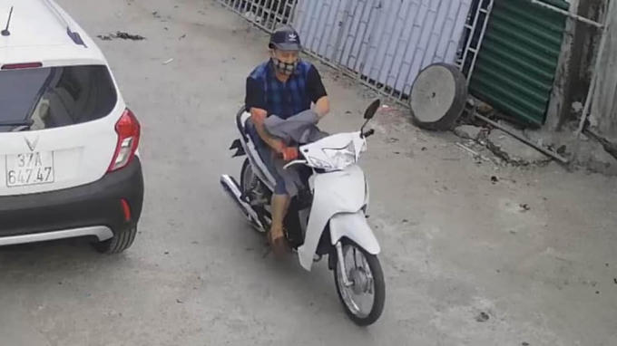Nghi phạm điều khiển chiếc xe máy, giấu dao dưới chiếc áo trước khi gây án.