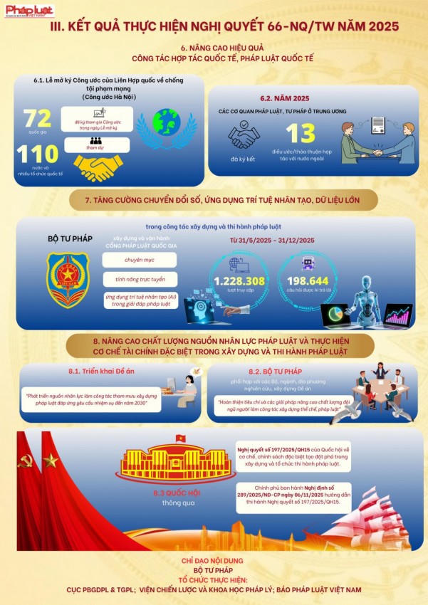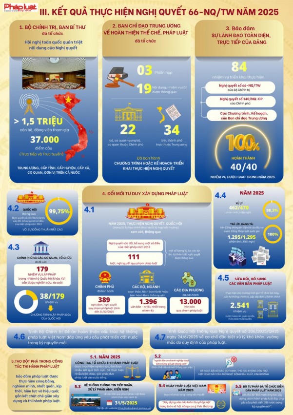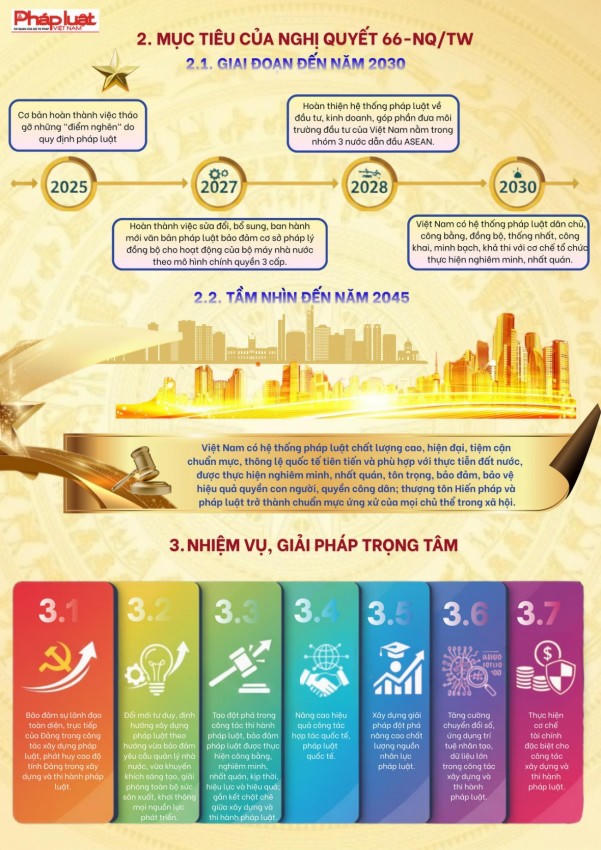 Nghị quyết số 66-NQ/TW của Bộ Chính trị được ban hành trong bối cảnh thế giới đang có những thay đổi mang tính thời đại, để đất nước vững bước vào kỷ nguyên mới - kỷ nguyên vươn mình phát triển bứt phá, giàu mạnh, hùng cường dưới sự lãnh đạo của Đảng; cùng với việc thực hiện cuộc cách mạng về tinh gọn tổ chức bộ máy, phấn đấu tăng trưởng kinh tế "hai con số", công tác cải cách, xây dựng và thi hành pháp luật phải được đổi mới căn bản, tạo động lực mạnh mẽ cho sự phát triển nhanh và bền vững của đất nước, trong kỷ nguyên vươn mình của dân tộc"...