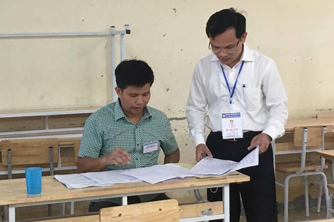 | Thanh tra chấm thi tại Hòa Bình. Ảnh: Nghiêm Huê. |
