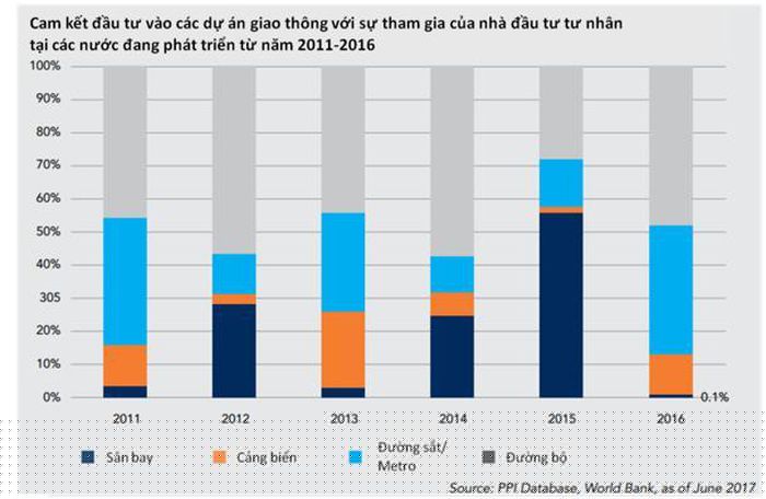 Cam kết đầu tư vào các dự án giao thông với sự tham gia của nhà đầu tư tư nhân tại các nước đang phát triển từ năm 2011 - 2016
