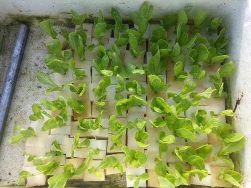 Trong suốt quá trình canh tác, anh không cần sử dụng đất, xơ dừa, không gây ẩm, nặng sân thượng. Hạt được gieo bên ngoài trên lớp mút dày cho tới khi có 3-4 lá.