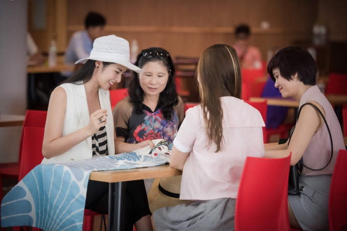 Trước khi lên máy bay, Ngọc Hân cùng bố mẹ và bạn bè ngồi cafe trò chuyện. Sang Nhật công tác đợt này, cô cũng mang bộ sưu tập áo dài mới nhất mà cô thiết kế - lấy cảm hứng từ hình ảnh các nàng Geisha - để thực hiện loạt ảnh mới tại xứ sở hoa anh đào.