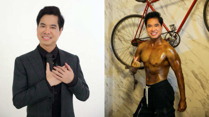 Danh ca Ngọc Sơn khoe dáng vóc săn chắc tuổi ngoài 50.