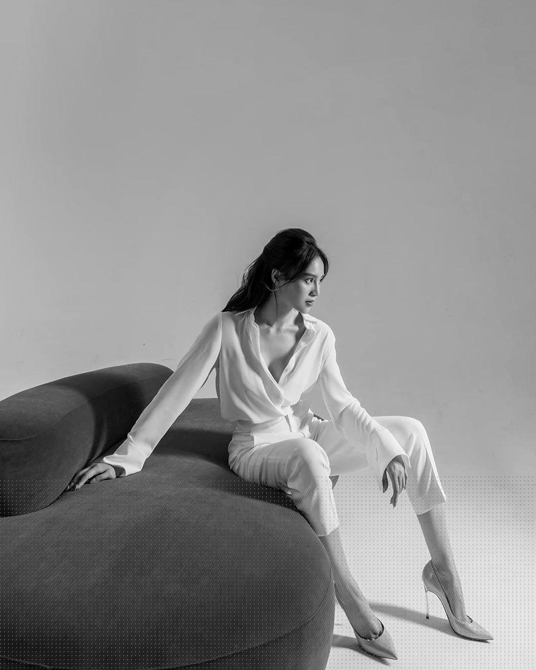 Ninh Dương Lan Ngọc tạm đổi sang phong cách thời trang năng động, hiện đại: “Sau những ngày nghỉ, chỉ dám chụp trắng đen hehe”.