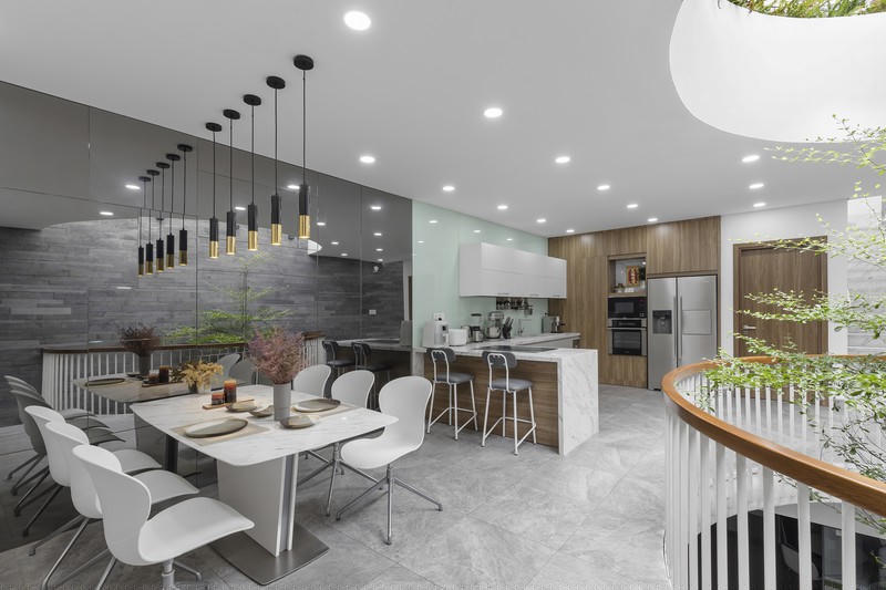 Phòng bếp và phòng ăn là nơi sinh hoạt chính của gia đình nên khu vực này được bày trí khá chỉnh chu.