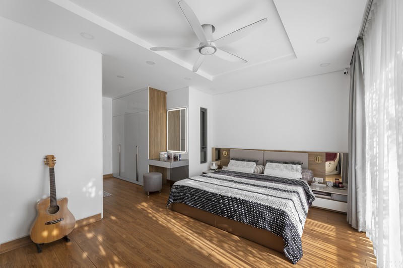 Căn phòng bố trí đơn giản, ấm cúng.