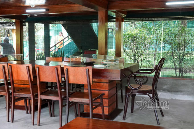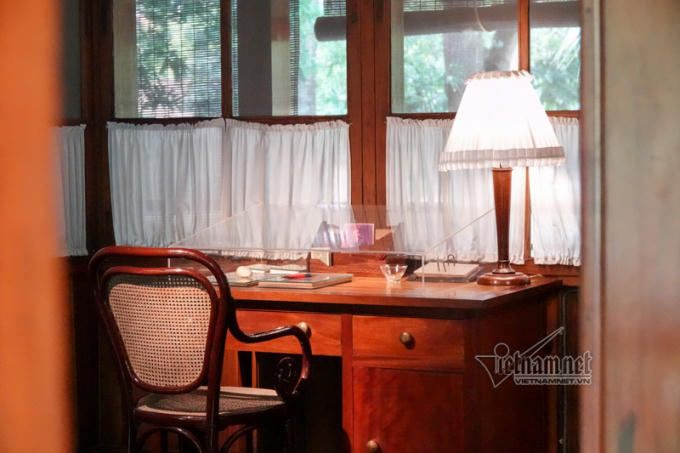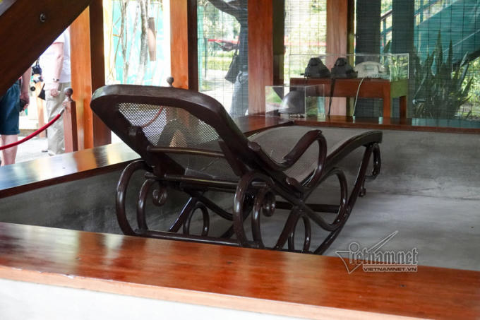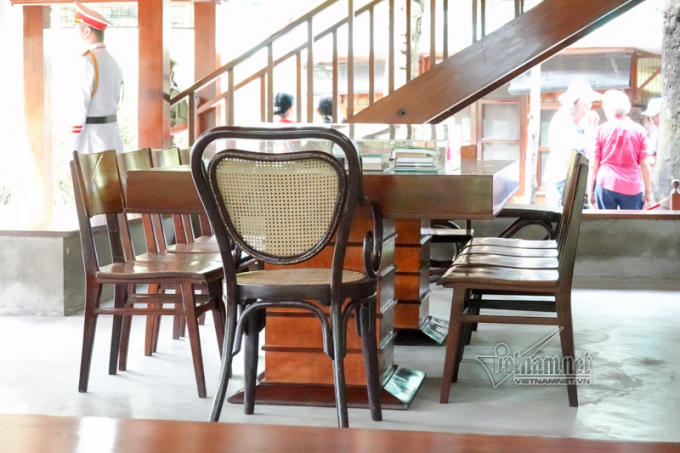 Những lúc thảo tài liệu “Tuyệt đối bí mật”, Bác đã ngồi ở chiếc ghế mây để viết hoặc ngồi đánh máy ở chiếc bàn gỗ được kê trong phòng làm việc ở tầng hai nhà sàn.