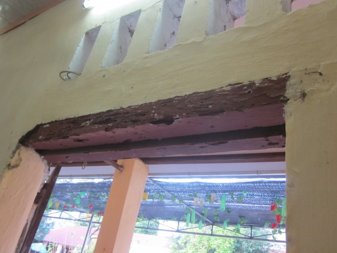 | Mối mọt ăn rỗng cửa sổ và các bức vách. Ảnh: Nguyệt Chi |