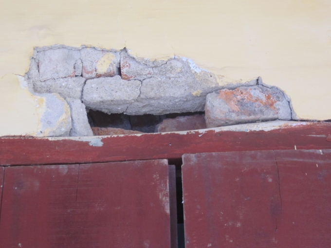 | Tường vỡ. Ảnh: Nguyệt Chi |
