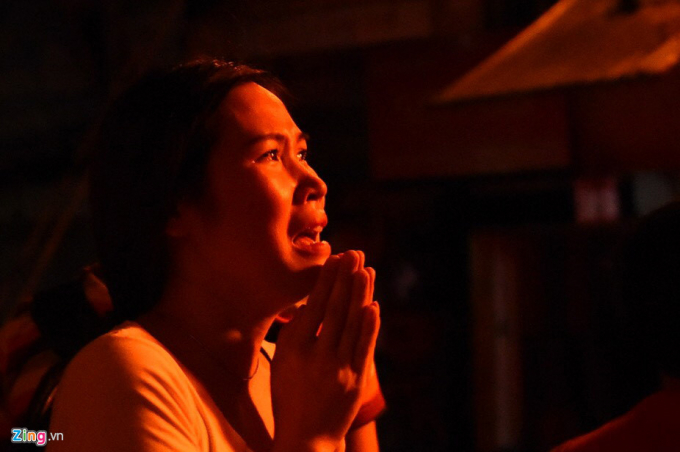 | Nhiều người dân cầu nguyện cho ngọn lửa mau được dập tắt. Ảnh: Phạm Thắng. |