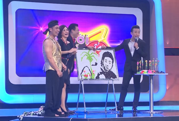 Không chịu thua, Vân Sơn cũng tung hứng khi cho biết cô “con gái” Nhật Kim Anh của mình rất tài năng và bản lĩnh. Anh còn dí dỏm đá xoáy Trấn Thành khi khẳng định nếu cưới Hồng Đào chắc chắn sẽ sinh ra một đứa con vừa có khuôn mặt xấu, lại vừa nhiều chuyện như… Trấn Thành.
