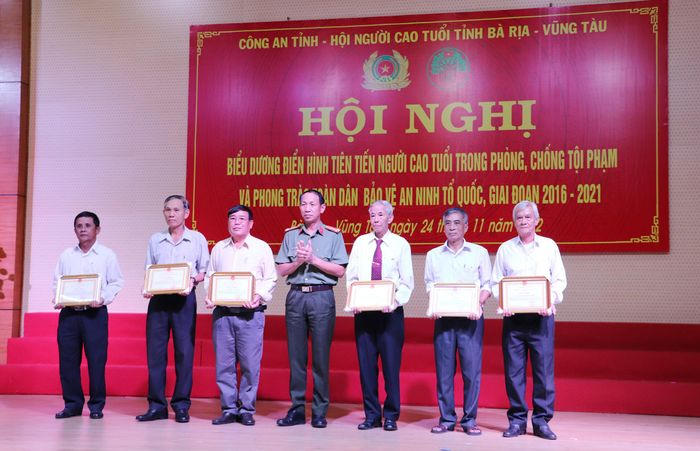 Tại hội nghị, Công an tỉnh Bà Rịa - Vũng Tàu đã tặng Giấy khen tới 14 NCT có thành tích trong thực hiện Chương trình phối hợp giữa Công an tỉnh và Hội NCT tỉnh về phòng, chống tội phạm và phong trào Toàn dân bảo vệ an ninh Tổ quốc, giai đoạn 2016-2021.