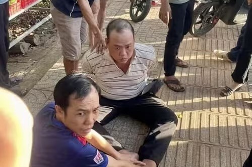 | Đối tượng cướp tiệm vàng bị người dân bắt giữ |