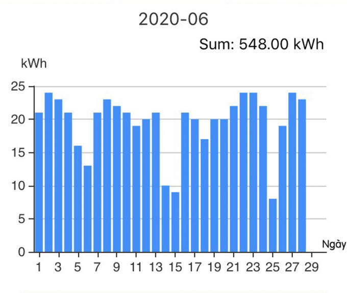 Lượng điện sản xuất được từ hệ thống ĐMTMN trong tháng 6/2020 của gia đình bà Nguyễn Thị Tỵ