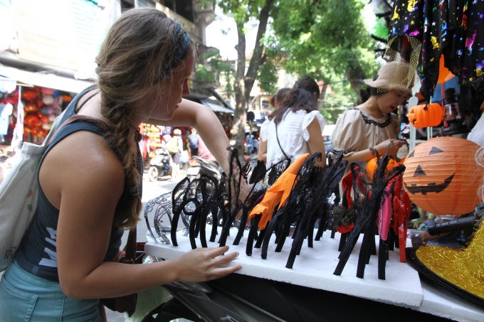 Sắp đến lễ hội Halloween 2016, du khách thập phương và người dân lại náo nức tham quan, mua sắm trang phục cho mình trên phố Hàng Mã.