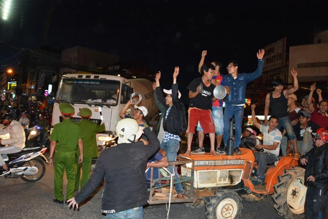 Trong tối cùng ngày, ngay khi biết được đội tuyển Việt Nam giành được chiếc vé vào vòng chung kết, nhiều nông dân nhất là thanh niên sinh sống ở các vùng ngoại ô TP Đà Lạt đã điều động những chiếc xe máy cày (cùng cờ đỏ sao vàng) chuyên phục vụ nông nghiệp thường ngày chạy vào trung tâm thành phố ăn mừng chiến thắng lịch sử của đội tuyển U23 Việt Nam.