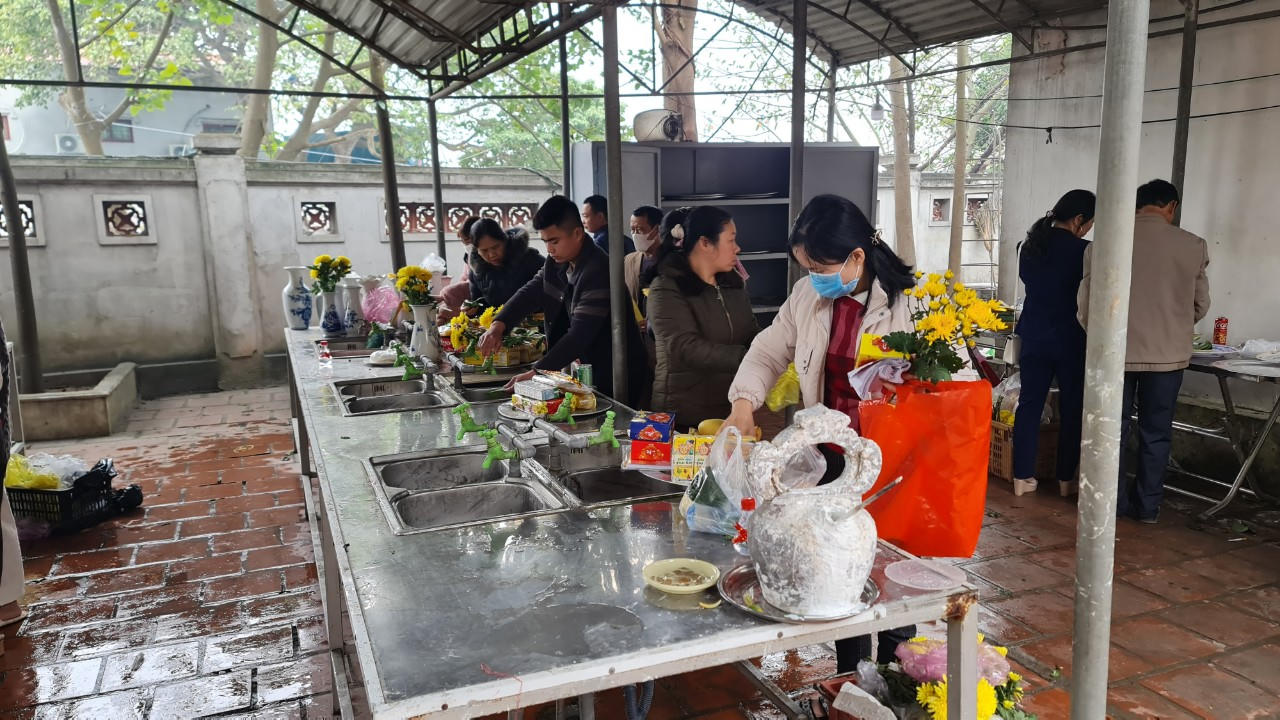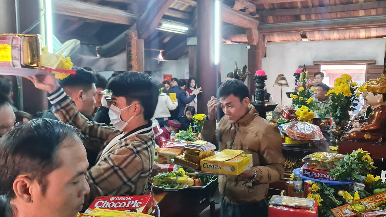 Người dân chuẩn bị đồ lễ trước khi vào thắp hương