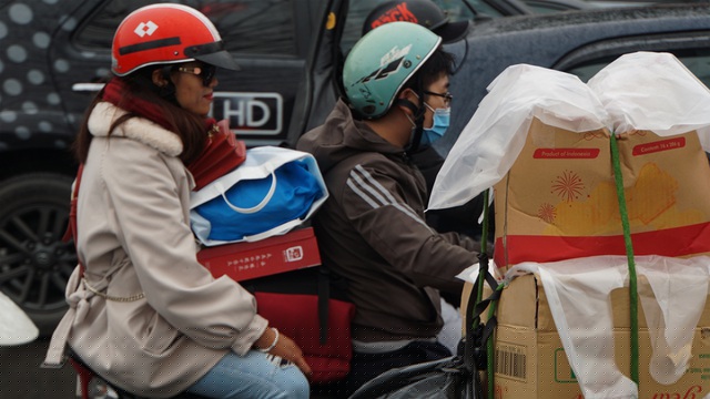 Phương tiện xe máy lỉnh kỉnh đồ đạc về quê đón Tết.