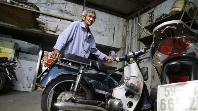 Ông kể, do lớn tuổi và làm việc nặng, có những lúc cơn đau chân, đau lưng hành đến không thể đi lại. 2 năm trước, ông còn nhận chở sắt cho người ta, nhưng sức yếu ông không thể chạy lên dốc cầu được, phải gọi điện thoại nhờ con trai ông ra giúp cha. 2 năm gần đây, ông chạy xích lô đi nhặt ve chai hoặc tìm vài chỗ phát cơm từ thiện xin về nhà ăn qua bữa, sau đó, ông nhận phụ giúp mọi người phát cơm vào thứ ba, thứ bảy hàng tuần, tối về ông giữ xe từ 5-9h tối.