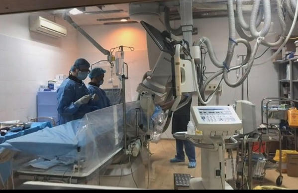 Bệnh nhân được chẩn đoán bị nhồi máu cơ tim cấp do tắc cấp tính động mạch vành bên phải. Các bác sĩ nhanh chóng tiến hành cấp cứu nong, đặt stent động mạch vành. Rất may tình trạng của bệnh nhân chưa quá nặng nên đã qua cơn nguy kịch.