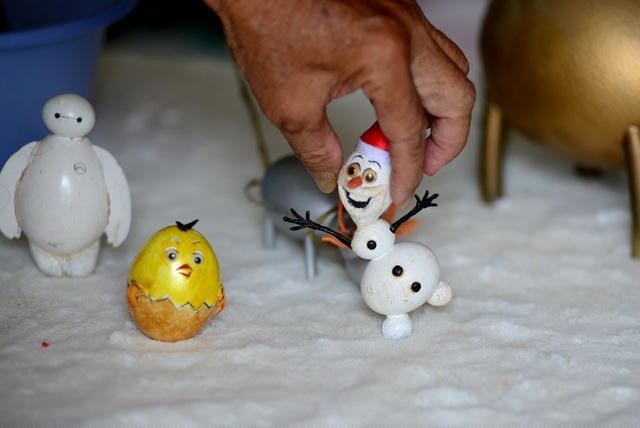 Ông Nguyễn Thành Tâm nắm giữ kỷ lục Việt Nam là người tạo hình nghệ thuật bằng vỏ trứng.