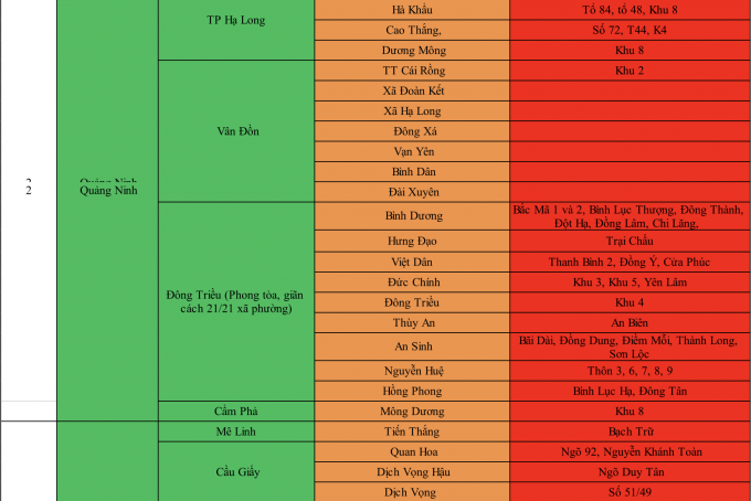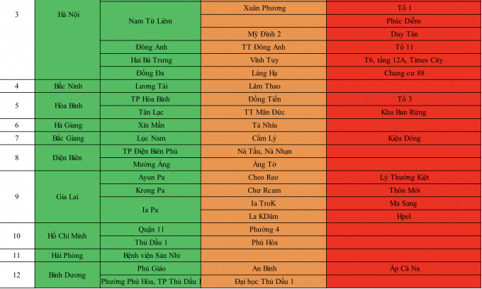 Dưới đây là danh sách chi tiết 51 khu vực tại 12 tỉnh/thành phố mà người dân khi tới tỉnh Bắc Giang sẽ phải cách ly y tế theo đúng quy định: