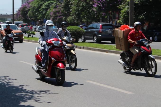 Dưới cái nắng cháy da cháy thịt nhưng vì công việc nên nhiều người vẫn phải ra đường, hơi nóng bốc lên từ đường nhựa phừng phừng khiến nhiều người phải vật vã trên đường.