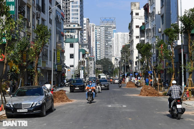 Một loạt các biển tên ngõ phố dọc đường Vũ Trọng Phụng đã trở lại sau thời gian bị đào bới, di dời. Bên lề đường còn tồn nhiều đống đất dùng để tôn đổ các gốc cây được trồng mới dọc hai bên hè đường.