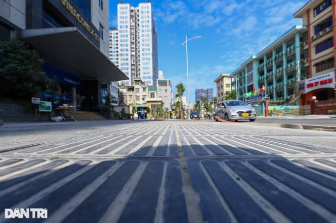 Phần vỉa hè đã được phủ lên bởi lớp đá nhẵn, đặc biệt có lối đi lát gạch vân nổi dành riêng dành cho người khiếm thị.