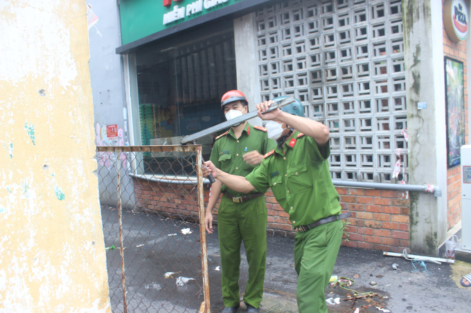 Cán bộ gỡ rào chắn ở các con hẻm.