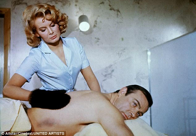 Trên màn bạc, người đẹp tóc vàng được biết tới là kiều nữ đầu tiên của Bond phô diễn hình thể nóng bỏng một cách táo bạo.