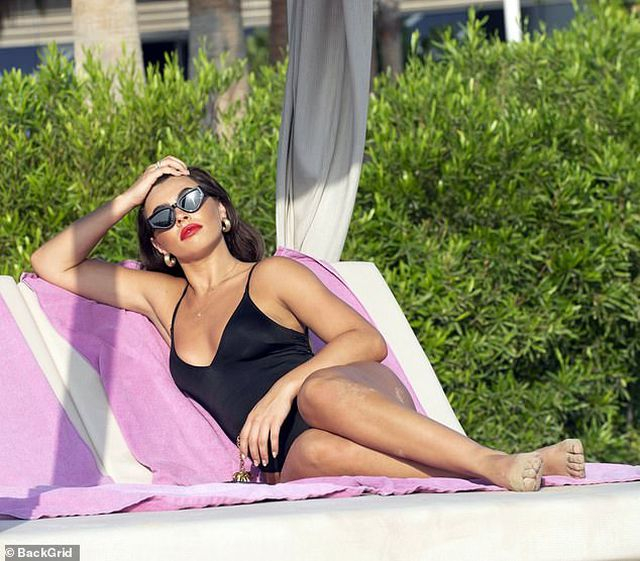 Francesca Allen khoe dáng nuột nà khi nằm tắm nắng trên bãi biển Dubai ngày 28/11 vừa qua.