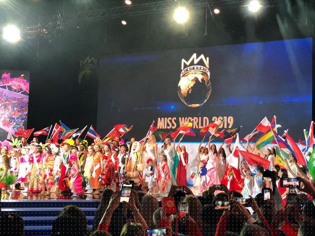 Top 40 Hoa hậu Thế giới 2019 xuất hiện trên sân khấu và Lương Thuỳ Linh cũng có mặt trong danh sách này.