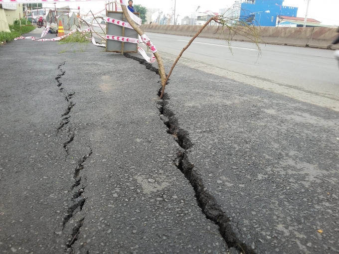 Trước đó, khoảng 17h chiều ngày 20/9 nhiều người tham gia giao thông hướng TP HCM đi Đồng Nai vô cùng hốt hoảng khi mặt đường trong làn xe máy trên quốc lộ 1A đoạn qua nghĩa trang liệt sĩ TP HCM khoảng 100m (phường Tân Phú, quận 9) bất ngờ bị nứt toác.