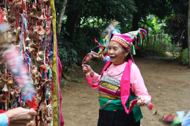 Nghệ nhân Phạm Thị Tắng thực hiện các nghi thức trong Lễ hội Pôồn Pôông.