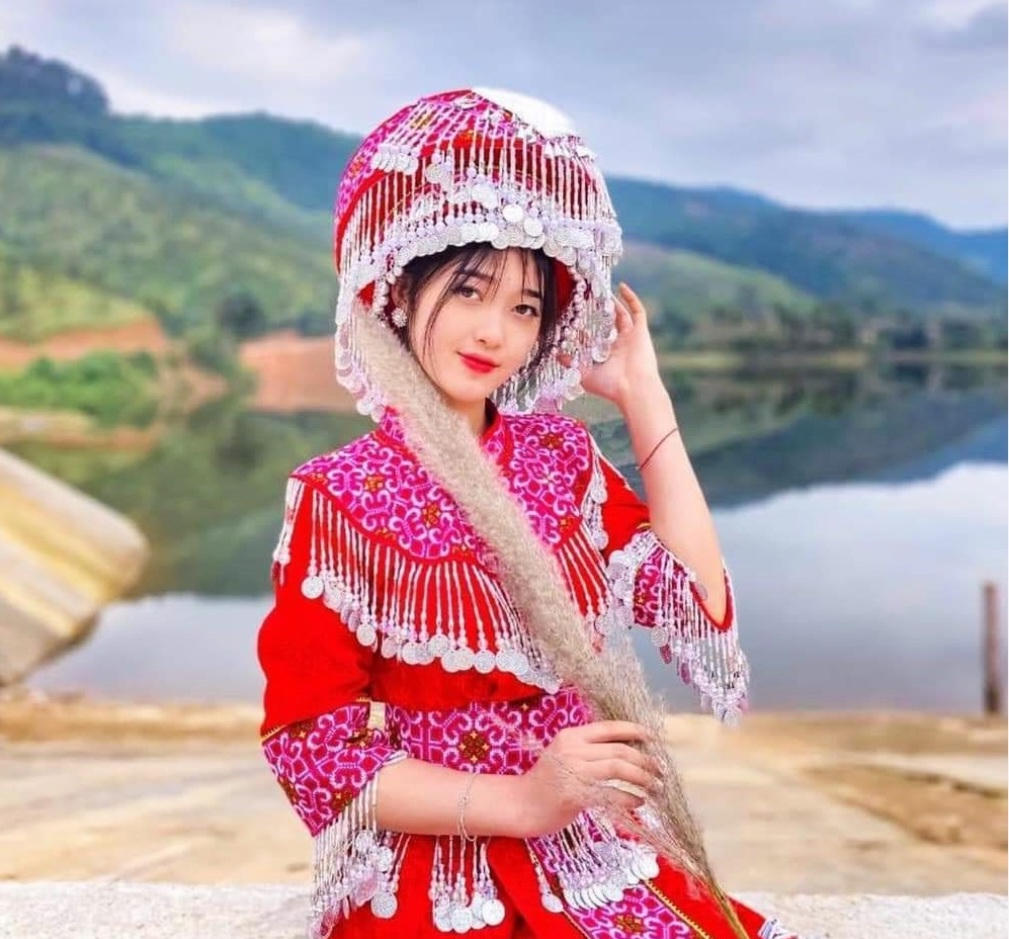 Thiếu nữ H’Mông, Tày, Nùng ở làng Mông trong trang phục truyền thống đi trẩy hội đầu Xuân. Ảnh: K.P