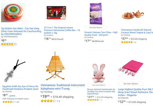 Một chiếc mũ cối, loại mũ hiện chỉ còn phổ biến với người lao động Việt Nam, có thể bán trên Amazon với giá lên tới 700 nghìn đồng, cộng chi phí vận chuyển do khách hàng chịu. Người mua sản phẩm này không phải là người tiêu dùng đại trà mà có thể là một đoàn làm phim hoặc một đội kịch cần mua vài chục chiếc làm đạo cụ. Hay các sản phẩm như nước mắm bán chủ yếu cho Việt kiều, cộng đồng chỉ chiếm 0,5% dân số Mỹ.